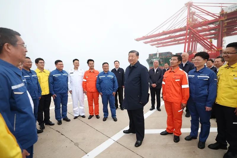 5月22日至24日,中共中央總書記、國家主席、中央軍委主席習(xí)近平在山東考察。這是22日下午,習(xí)近平在日照港親切慰問港口科技工作者、運營人員、航運人員。