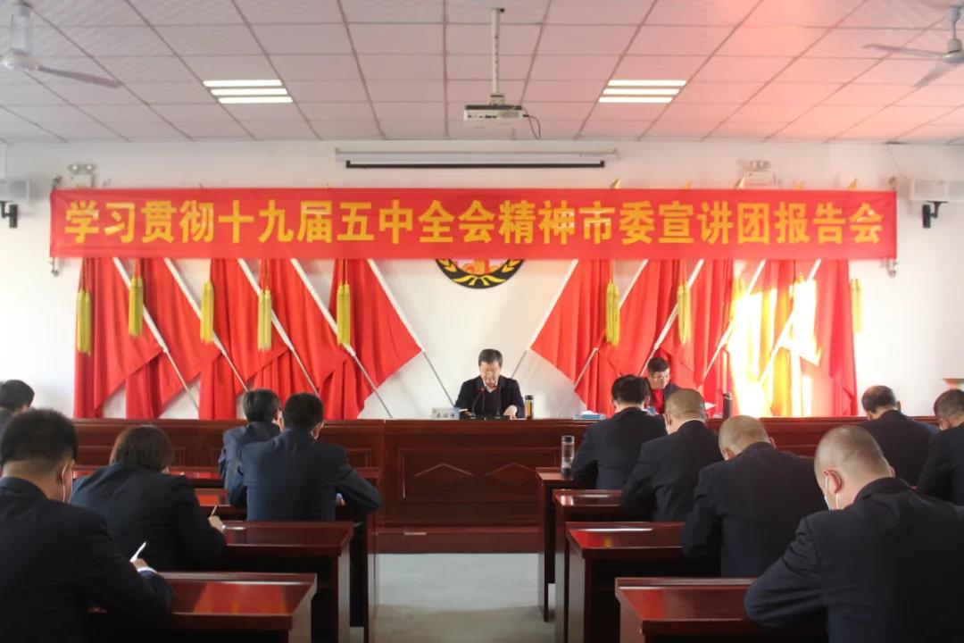 12月4日,學(xué)習(xí)貫徹十九屆五中全會(huì)市委宣講團(tuán)報(bào)告會(huì)在山西大正保安服務(wù)有限公司進(jìn)行。市委宣講團(tuán)成員、市工信局(國資委)黨委書記、局長吳瑞峰作宣講報(bào)告。公司黨委書記、董事長張躍生主持報(bào)告會(huì)。黨委副書記、總經(jīng)理趙培宏等在家領(lǐng)導(dǎo)班子成員及中層副職以上干部50余人參加。吳瑞峰同志從深刻認(rèn)識(shí)我國進(jìn)入新發(fā)展階段的重大意義、有利條件和重要特征以及準(zhǔn)確把握2035年遠(yuǎn)景目標(biāo)和“十四五”時(shí)期我國發(fā)展的指導(dǎo)方針、主要目標(biāo)、重點(diǎn)任務(wù)等五個(gè)方面內(nèi)容,結(jié)合當(dāng)前形勢(shì)及國資國企改革發(fā)展實(shí)際,對(duì)黨的十九屆五中全會(huì)精神進(jìn)行了深入淺出、全面細(xì)致的宣講。