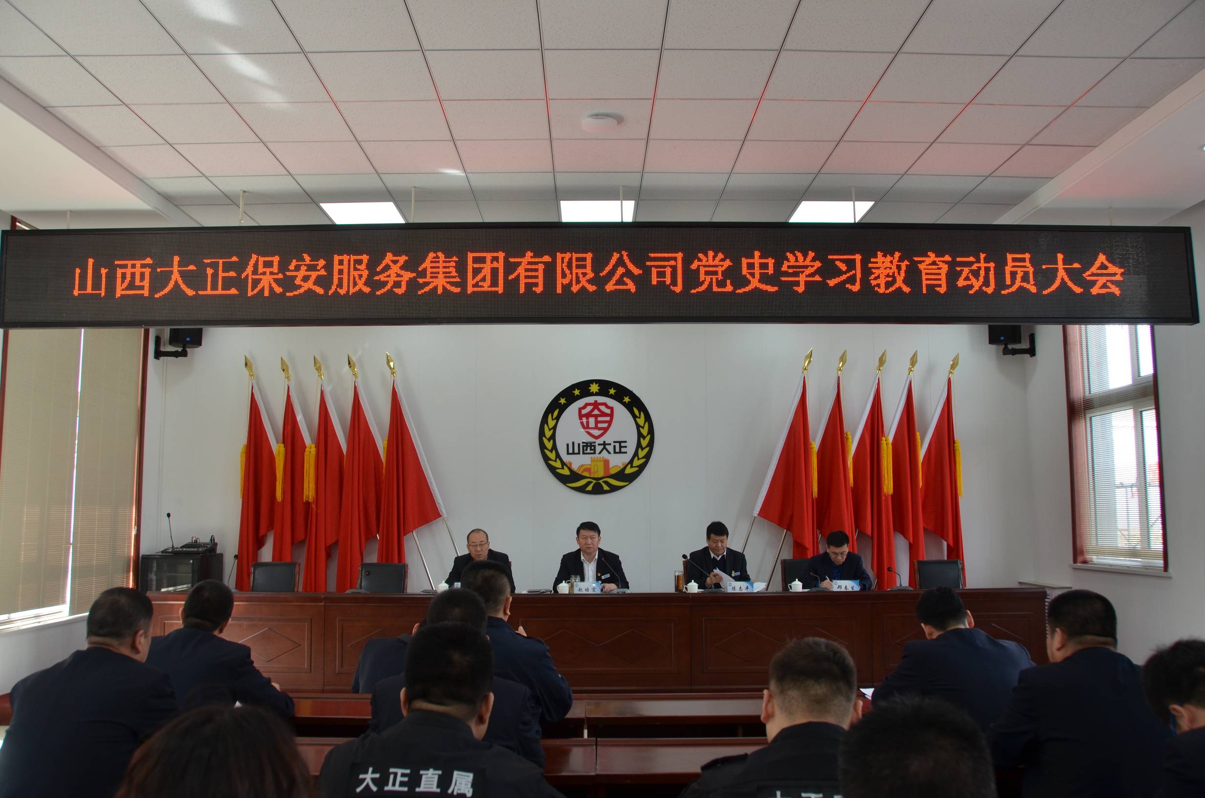 3月29日上午,山西大正保安服務(wù)有限公司召開黨史學(xué)習(xí)教育動員大會,深入學(xué)習(xí)貫徹習(xí)近平總書記在全國黨史學(xué)習(xí)教育動員大會上的重要講話精神,認真落實市委、市國資委黨委動員大會精神,結(jié)合公司實際對開展黨史學(xué)習(xí)教育進行全面動員部署。公司在家的領(lǐng)導(dǎo)班子成員、中層副職以上管理人員、各基層黨組織負責(zé)人及黨員代表參會,公司黨委副書記、總經(jīng)理趙培宏主持會議。