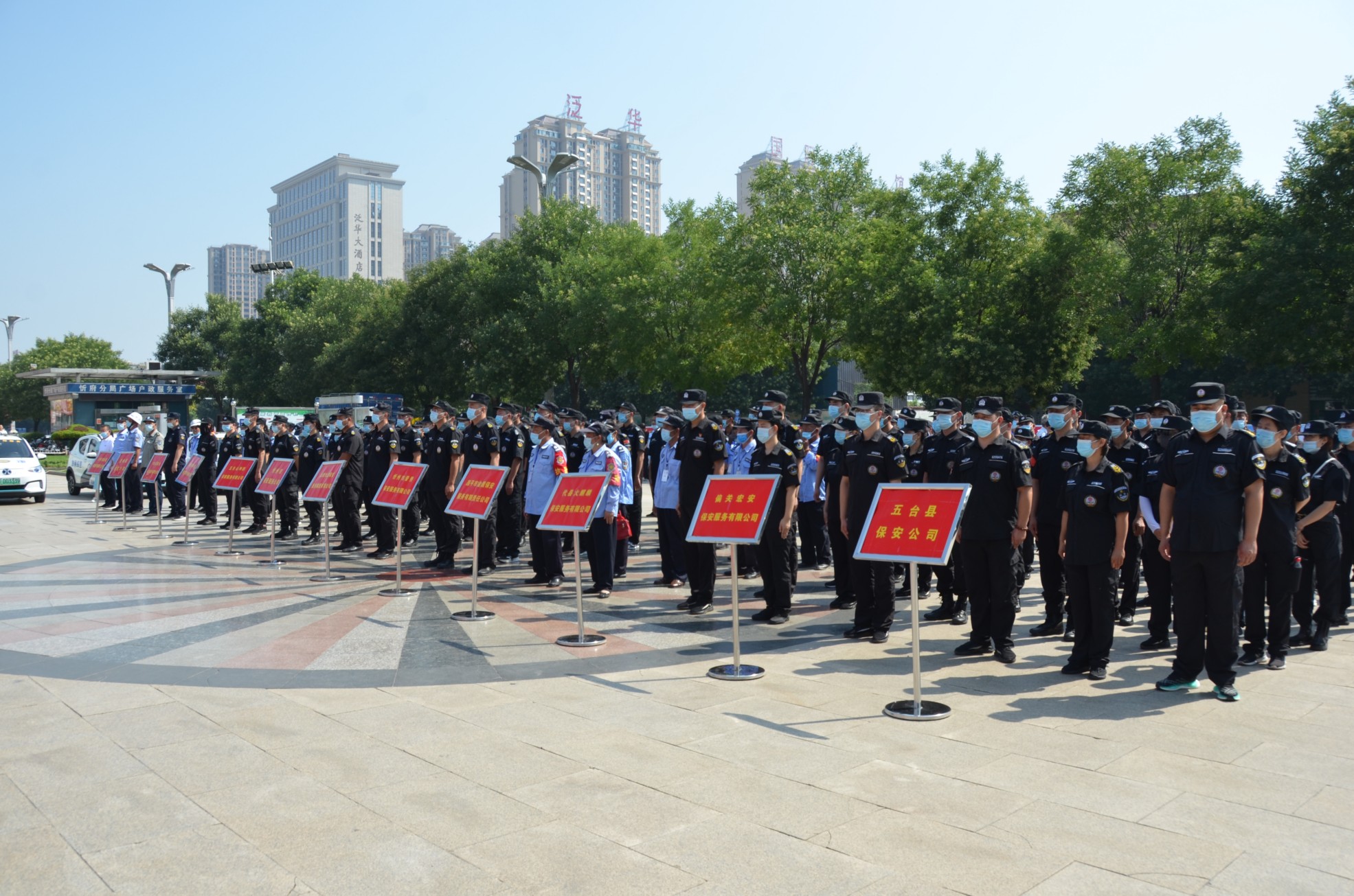 7月24日上午10時,我公司員工在忻州市體育廣場與各市縣保安公司員工200余人開展以“喜迎二十大,保安護平安”為主題的保安行業(yè)主題宣傳日活動。此次活動由忻州市公安局治安管理支隊負責人張志鵬主持,忻州市公安局黨委委員、副局長楊德華、忻州市保安協(xié)會領(lǐng)導出席。
