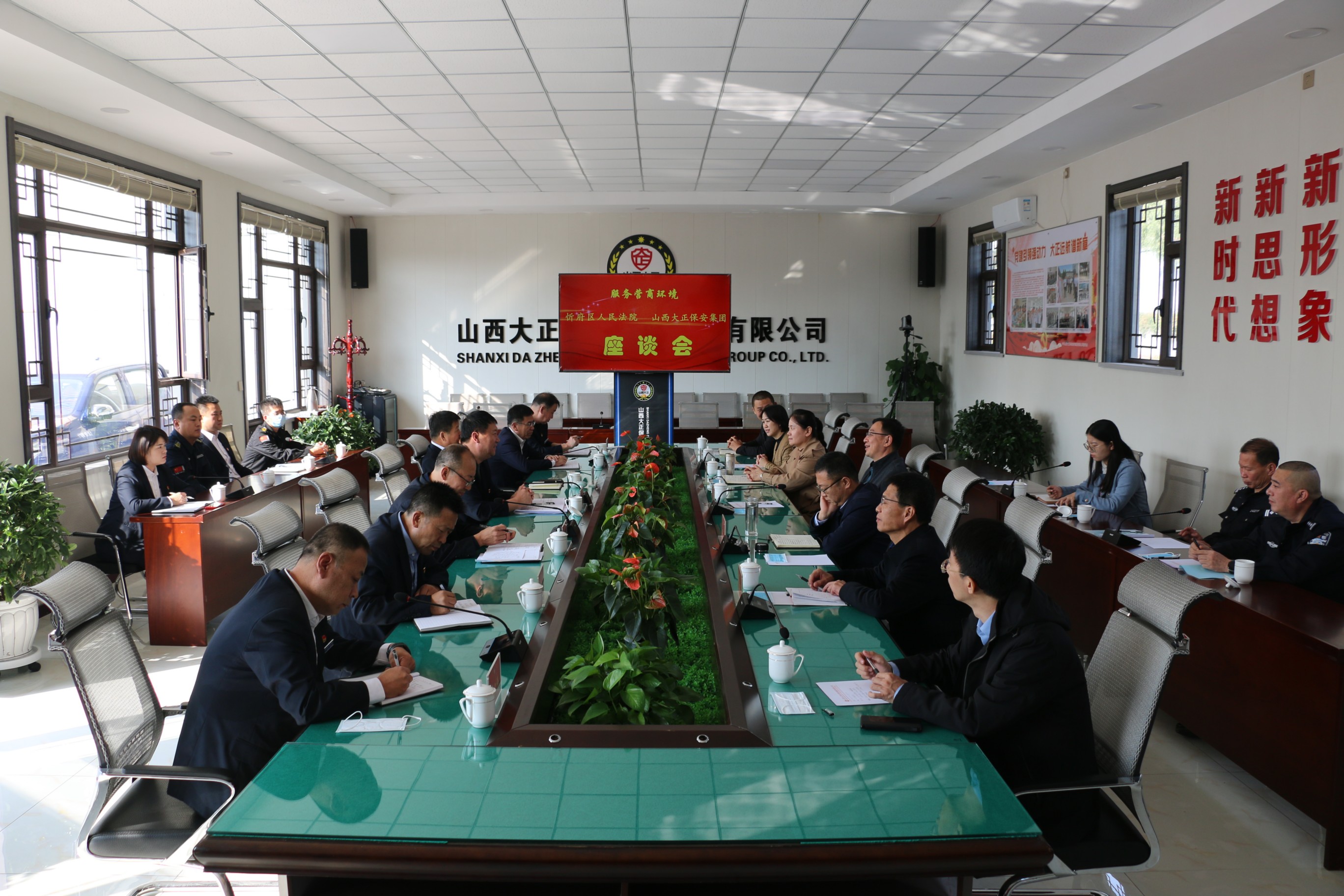 10月14日,忻府區(qū)人民法院黨組書記、院長韓進堂攜領導班子及相關部門負責人一行到山西大正保安服務集團有限公司走訪調研,了解企業(yè)生產經營情況及司法需求,為企業(yè)提供司法服務,助力企業(yè)紓困解難。集團公司黨委副書記、總經理趙培宏等班子成員參加調研座談會。