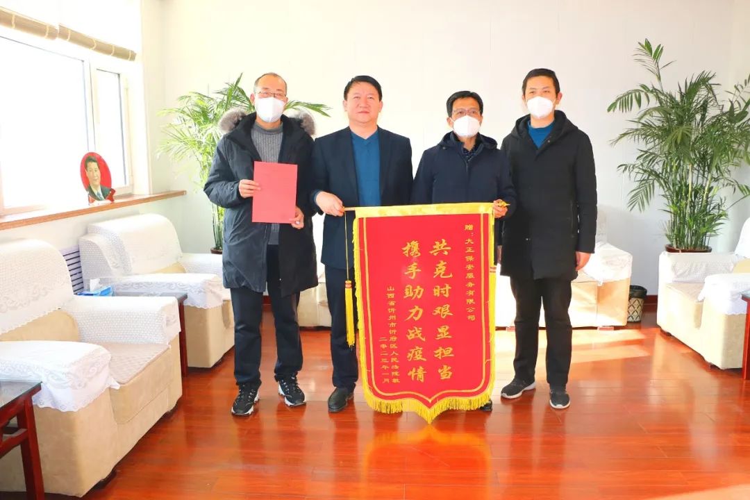 1月9日上午,忻府區(qū)法院黨組成員、副院長黃偉,黨組成員、政治部主任焦旭林帶著寫有“共克時艱顯擔當 攜手助力戰(zhàn)疫情”的錦旗和一封感謝信來到了山西大正保安服務集團有限公司,表達對保安公司在疫情防控中無私無畏、甘愿付出的誠摯謝意。大正保安集團公司黨委副書記、總經(jīng)理趙培宏、黨委委員、副總經(jīng)理王明生接洽。自2022年11月6日忻府區(qū)突發(fā)疫情以來,山西大正保安服務集團有限公司駐忻府區(qū)法院勤務點的隊員們在陳曉東隊長的帶領(lǐng)下,積極響應疫情防控各項要求,除在保障法院關(guān)鍵時期平穩(wěn)運行外,保安公司職員還能夠挺身而出,積極投身防疫點值守、后勤保障、車輛運行、機關(guān)防疫消殺等方面,以實際行動為忻府區(qū)法院疫情防控及機關(guān)安保工作做出了突出貢獻。越是緊要關(guān)頭,越能映照初心;越在關(guān)鍵時刻,越顯擔當使命。面對突如其來的疫情“大考”,大正保安集團積極響應號召,主動、迅速地配合我院防疫部署,精心服務群眾、嚴格執(zhí)行命令、防范意識到位,助力織密織牢疫情防控網(wǎng),充分展示了大正保安人的職業(yè)素養(yǎng)與責任擔當。幾年來,山西大正保安服務集團有限公司駐區(qū)法院全體職員,以法院為家,服從工作需要,積極參與各項審判事業(yè),做到聞令而動,成為不可或缺的中堅力量,為法院跨越式發(fā)展提供了巨大支持。
