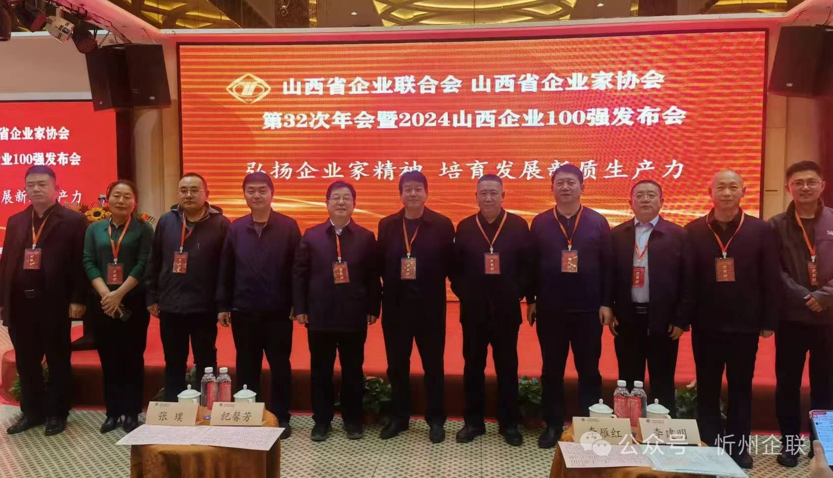 山西企聯(lián)第32次年會暨2024山西企業(yè)100強發(fā)布會于11月22日在太原市大昌國際酒店召開。會議以“弘揚優(yōu)秀企業(yè)家精神,培育發(fā)展新質(zhì)生產(chǎn)力”為主題。山西企聯(lián)名譽會長、省人大原黨組書記、常務副主任紀馨芳,山西企聯(lián)顧問、省政府原副主席李雁紅,山西企聯(lián)顧問、省政協(xié)原副主席張璞,中國企聯(lián)副秘書長李建明等領導和500余名企業(yè)代表出席了會議。忻州市二十家企業(yè)上榜 ,忻州企聯(lián)會長陳志平率隊參會。