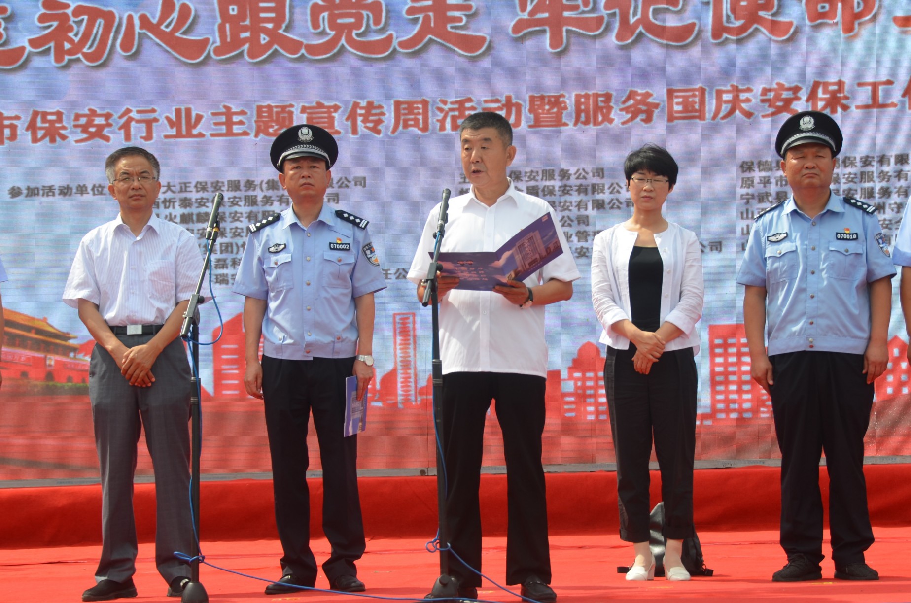 7月24日,忻州市公安局、忻州市保安協(xié)會(huì)會(huì)同山西大正保安服務(wù)有限公司、忻州市公安局直屬分局、忻州市公安局忻府分局及全市18家保安企業(yè)在忻州市客運(yùn)中心與全國各地同步舉行保安行業(yè)“不忘初心跟黨走、牢記使命勇?lián)?dāng)”主題宣傳周活動(dòng)暨服務(wù)國慶安保工作誓師儀式。