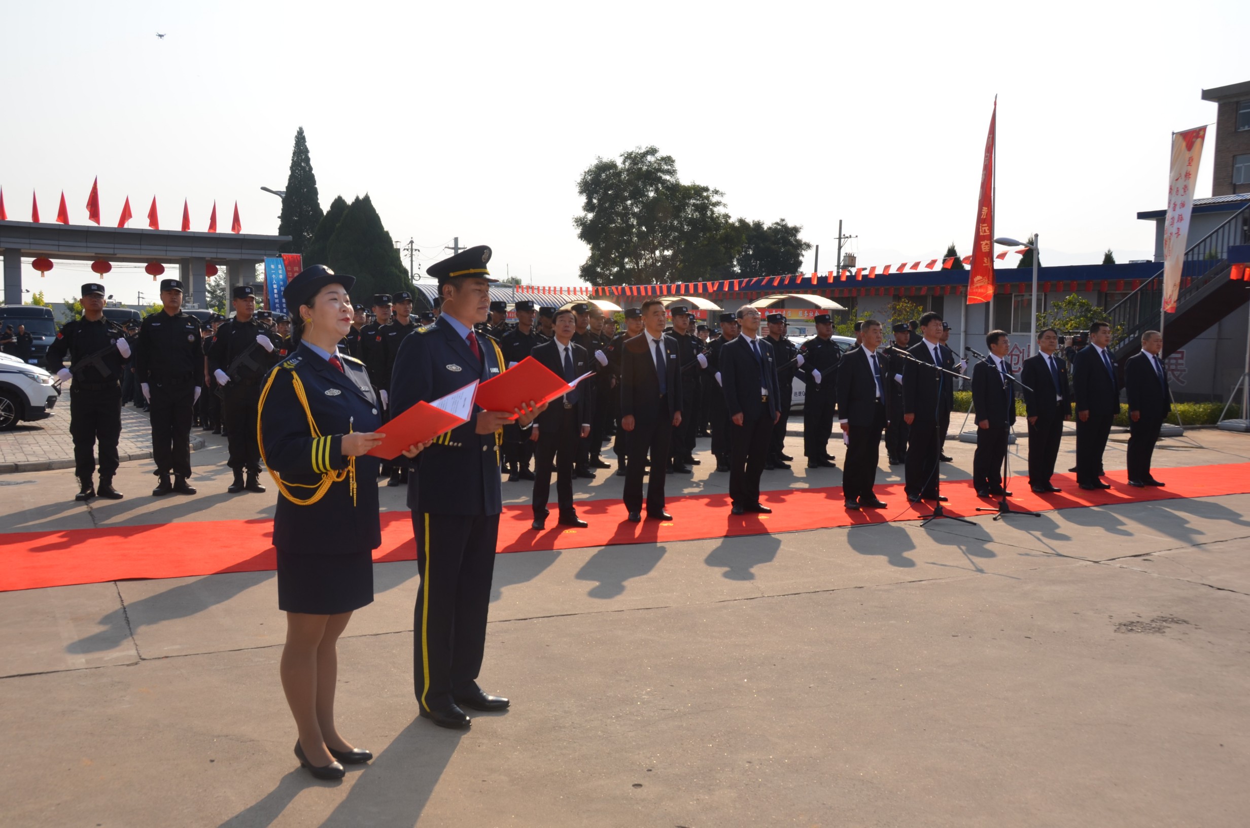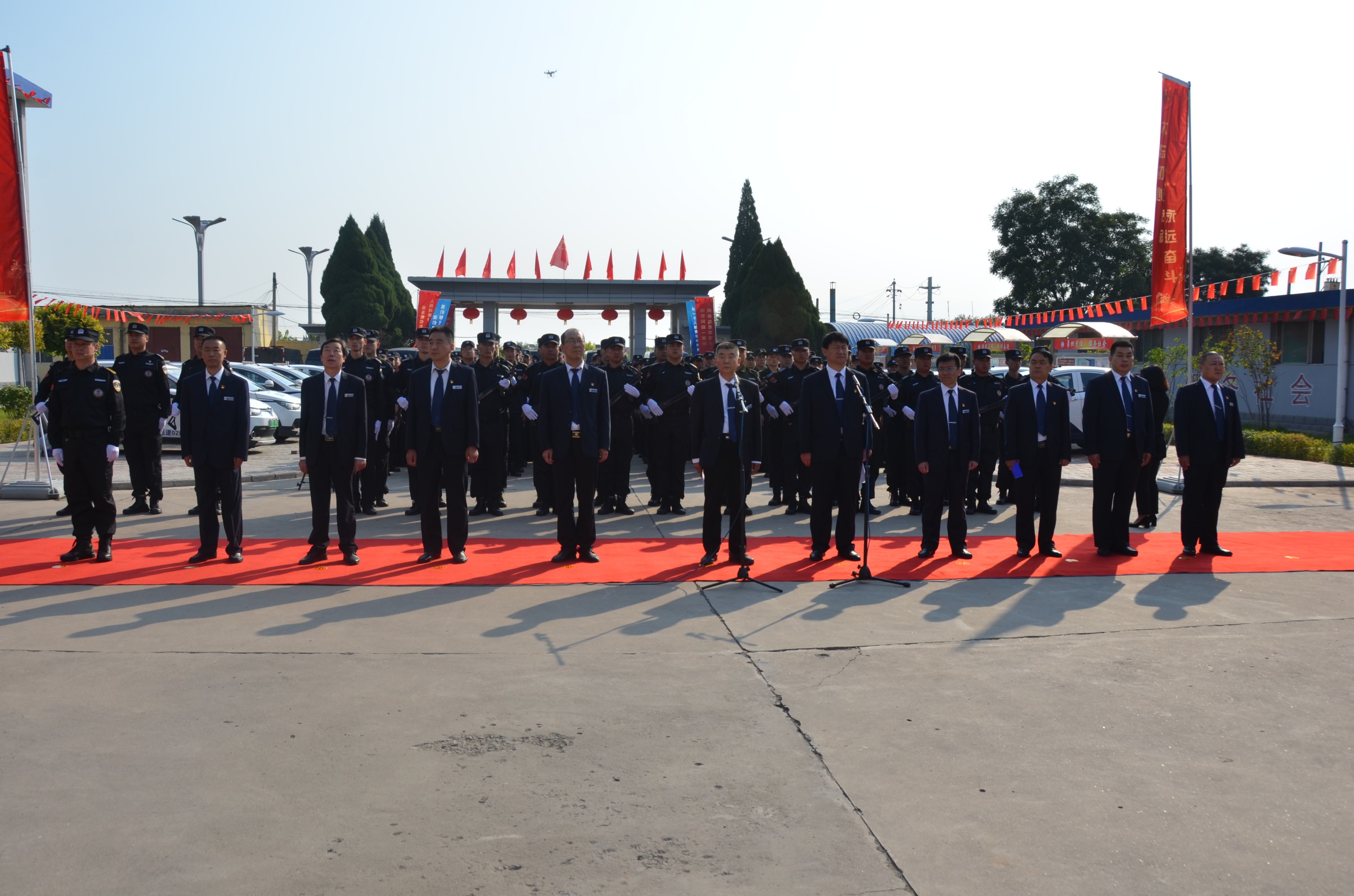 在中華人民共和國成立70周年即將來臨之際,為進一步提高廣大干部職工的愛國意識,營造濃厚的愛國愛企氛圍,激發(fā)正能量、提升凝聚力。9月27日,山西大正保安服務(wù)有限公司在公司城南駐地隆重舉行莊嚴的升旗儀式。黨委書記、董事長張躍生作重要講話,公司黨委委員、副總經(jīng)理趙培宏主持升旗儀式。王明生、邢春生、張瑞東、呂雙明等公司領(lǐng)導(dǎo)、機關(guān)各單位及基層九個分公司的400余名干部職工參加儀式。