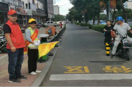 紅燈亮起,停車線邊的工作人員便舉起手中的小旗,向行人與車輛作出停止示意,并對停車位置有誤的電動(dòng)車做出指揮和引導(dǎo),對搶行、闖紅燈等不遵守交規(guī)的行人進(jìn)行制止;對年紀(jì)較大、腿腳不便的居民,志愿者主動(dòng)攙扶,護(hù)送其安全的過馬路。在志愿者的文明勸導(dǎo)下,行人闖紅燈現(xiàn)象明顯減少,車輛和行人安全有序通行,道路交通安全暢通。