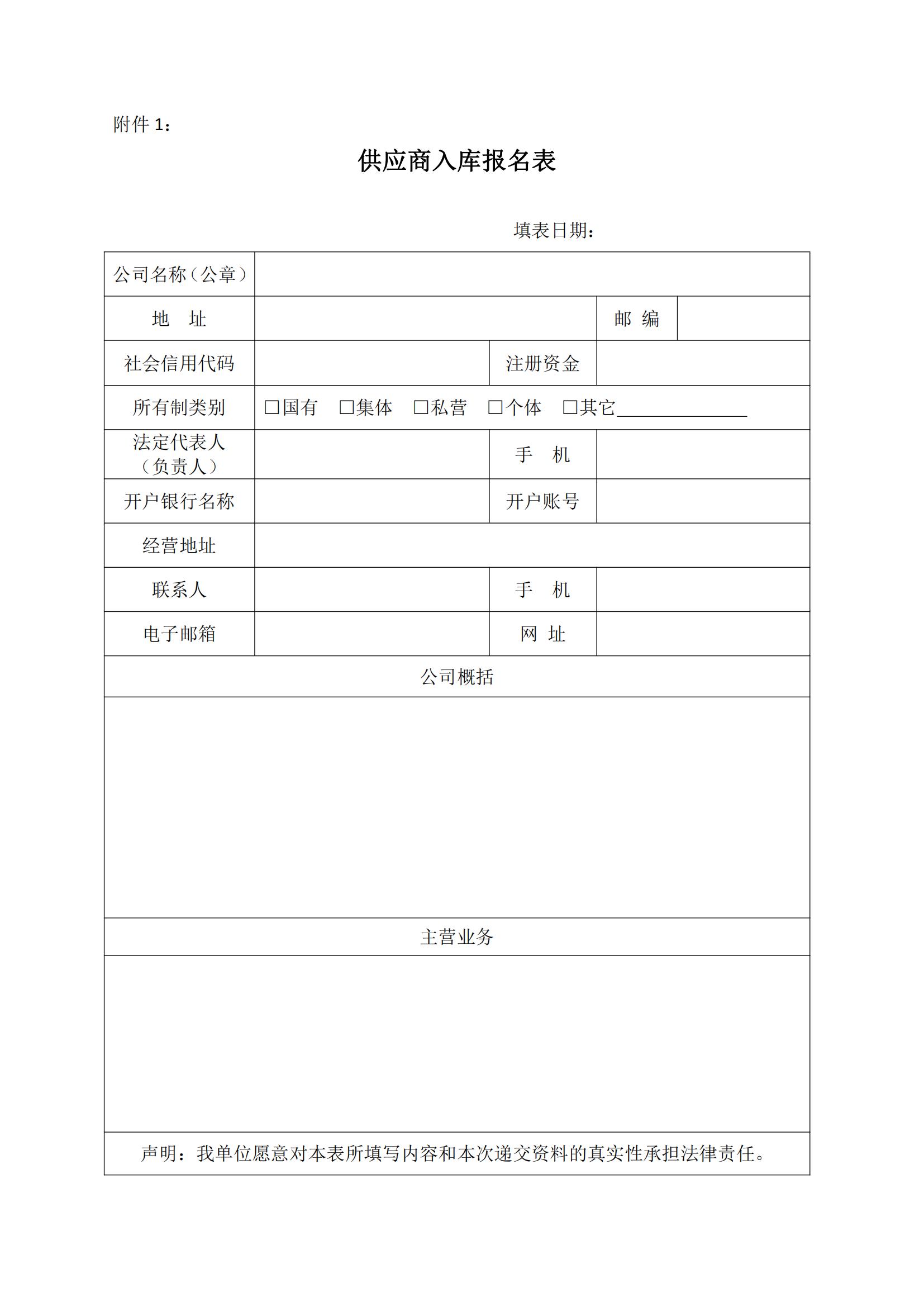 1、供應(yīng)商入庫報名表(見附件);