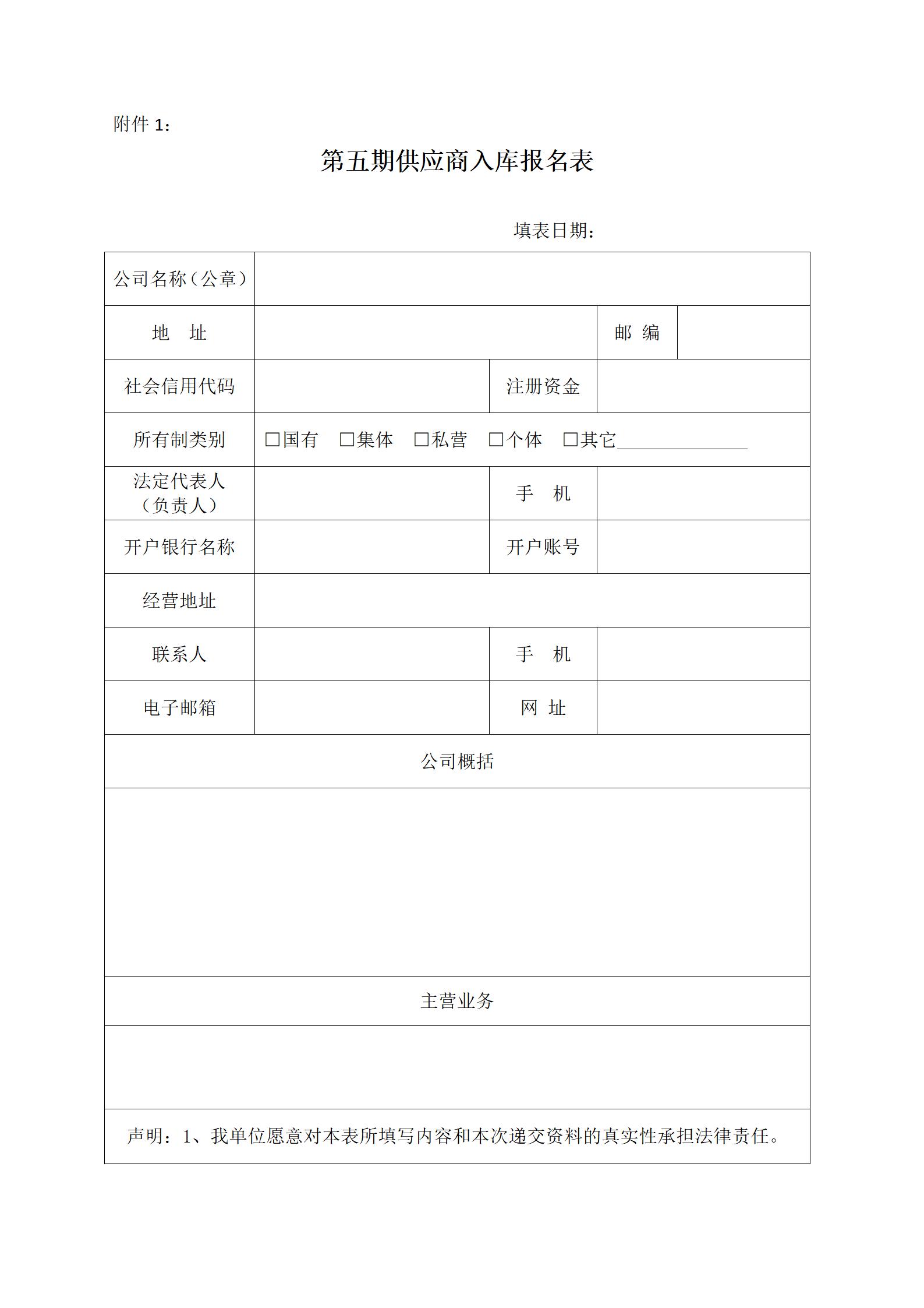 1、供應(yīng)商入庫(kù)報(bào)名表(見(jiàn)附件);