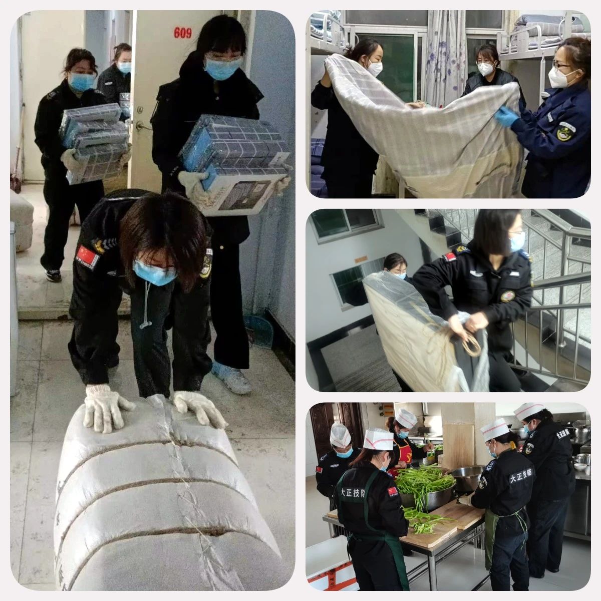 在這場(chǎng)沒有硝煙的戰(zhàn)爭(zhēng)中,大正的鏗鏘玫瑰們聽從公司指揮、勇毅“逆行”。在接到抗疫任務(wù)的第一時(shí)間便趕回工作崗位,得知需要24小時(shí)備戰(zhàn)執(zhí)勤時(shí),她們和其他男同志一樣默默接受,沒有任何怨言。雖然她們已身為人妻人母,但是為了疫情防控的需要,她們選擇了和家人暫時(shí)的分離,無法顧及家里人的生活,一心抗疫。她們有的是辦公室人員、有的是監(jiān)控人員、有的是技防人員、有的是勤務(wù)指揮中心人員,她們都是普通的工作人員,家中有年邁的父母、年幼的孩子,有付出,也有虧欠......但面對(duì)疫情,她們做出了相同的選擇——那就是挺身而出,迎難而上,她們說:“既然選擇作為大正的保安,我們就要像其他男同事一樣沖鋒陷陣。”她們用實(shí)際行動(dòng)詮釋著大正人的奮勇向前,彰顯了堅(jiān)韌不拔的巾幗風(fēng)采。
