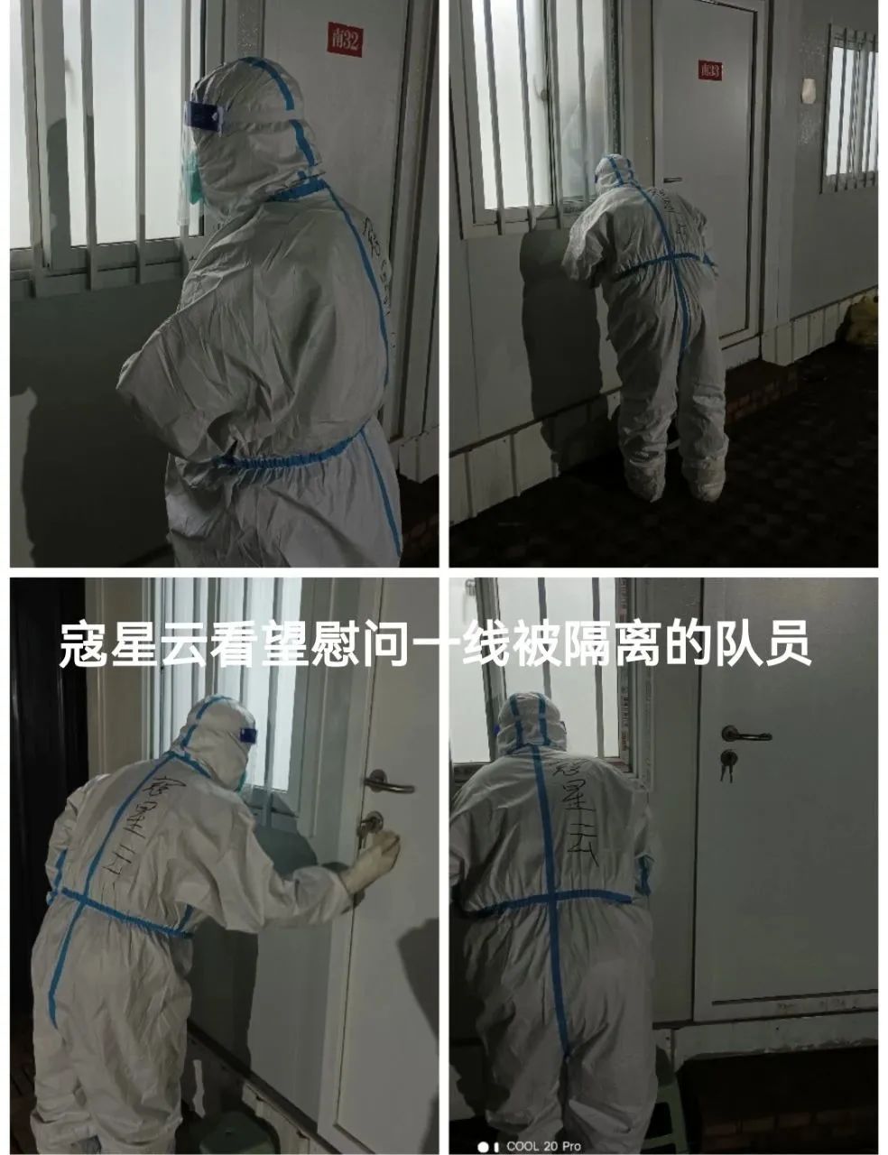 關(guān)心溫暖人心,關(guān)懷凝聚力量,領(lǐng)導(dǎo)的關(guān)心是對一線員工的最大安慰和精神鼓舞,組織的關(guān)懷是凝聚力量、激發(fā)斗志的不竭動力,不論是出征前的動員講話,還是送別隔離區(qū)一線隊員的鼓勵和問候,以及在微信群里的囑咐鼓勁,寇星云同志始終把大家的個人安危放在第一位,時刻叮囑隊員們必須做好自我防護,確保自身安全,堅決杜絕內(nèi)部感染傳播,只有自己安全才能更好地服務(wù)病患、服務(wù)好隔離人員,才能高質(zhì)量、高標(biāo)準(zhǔn)完成我們的使命任務(wù),才是對家人、對社會的真正負(fù)責(zé)。他鼓勵大家發(fā)揮守押隊伍能征善戰(zhàn)、沖鋒陷陣、挑戰(zhàn)自我,苦干實干的優(yōu)良作風(fēng),堅定抗疫有我、戰(zhàn)疫必勝、疫情不散、堅守陣地的信心和決心。對在工作中因勞累過度、身體受傷、出現(xiàn)不適的隊員更是關(guān)心備至、體貼入微,親自看望受傷隊員田振華,關(guān)心照顧因低血糖暈倒在一線的隊員吳彩霞,慰問在隔離宿舍和方艙隔離區(qū)因勞累過度出現(xiàn)身體不適的13名隊員,給他們送去生活用品,并和他們進(jìn)行親切地交談,帶去組織的關(guān)懷,領(lǐng)導(dǎo)的關(guān)心,凝聚人心,鼓舞士氣。