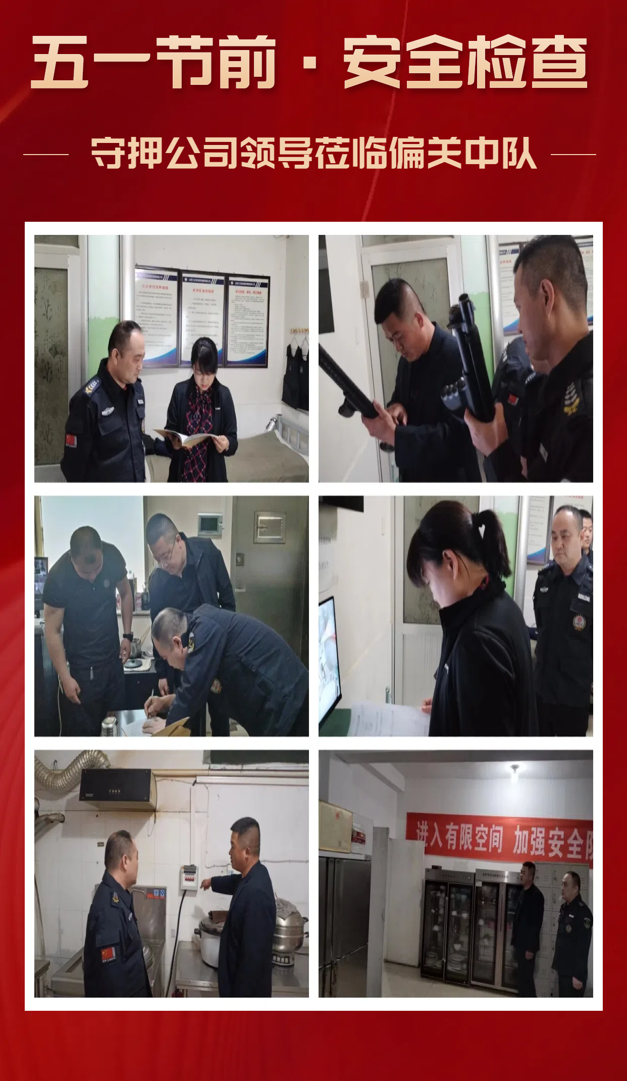 為貫徹落實(shí)集團(tuán)公司《關(guān)于做好2024年“五一”勞動(dòng)節(jié)期間安保工作的通知》的各項(xiàng)工作安排及要求,集團(tuán)公司安全保衛(wèi)部及各子分公司負(fù)責(zé)人認(rèn)真組織并開(kāi)展了節(jié)前安全大檢查大整改,全面排查各駐地配套設(shè)施、執(zhí)勤駐點(diǎn)及公司辦公大樓的安全風(fēng)險(xiǎn)和隱患,以杜絕所屬工作區(qū)域內(nèi)各類安全事故的發(fā)生,進(jìn)一步加固客戶單位的安全防護(hù)網(wǎng),為即將到來(lái)的“五一”勞動(dòng)節(jié)營(yíng)造一個(gè)安全、穩(wěn)定、和諧的氛圍。