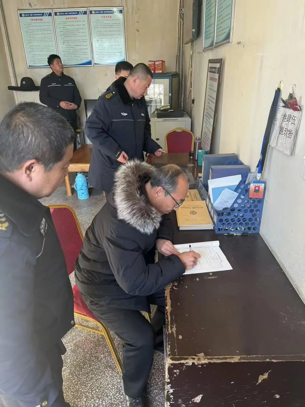 1月15日下午,集團公司安全督導(dǎo)檢查組羅鵬生、趙補安一行赴守押公司四大隊寧武中隊進行了全面的安全檢查。大隊長楊貴文、副大隊長王玉江、中隊長樊正及副中隊長張虎林、李懷彥全程配合。