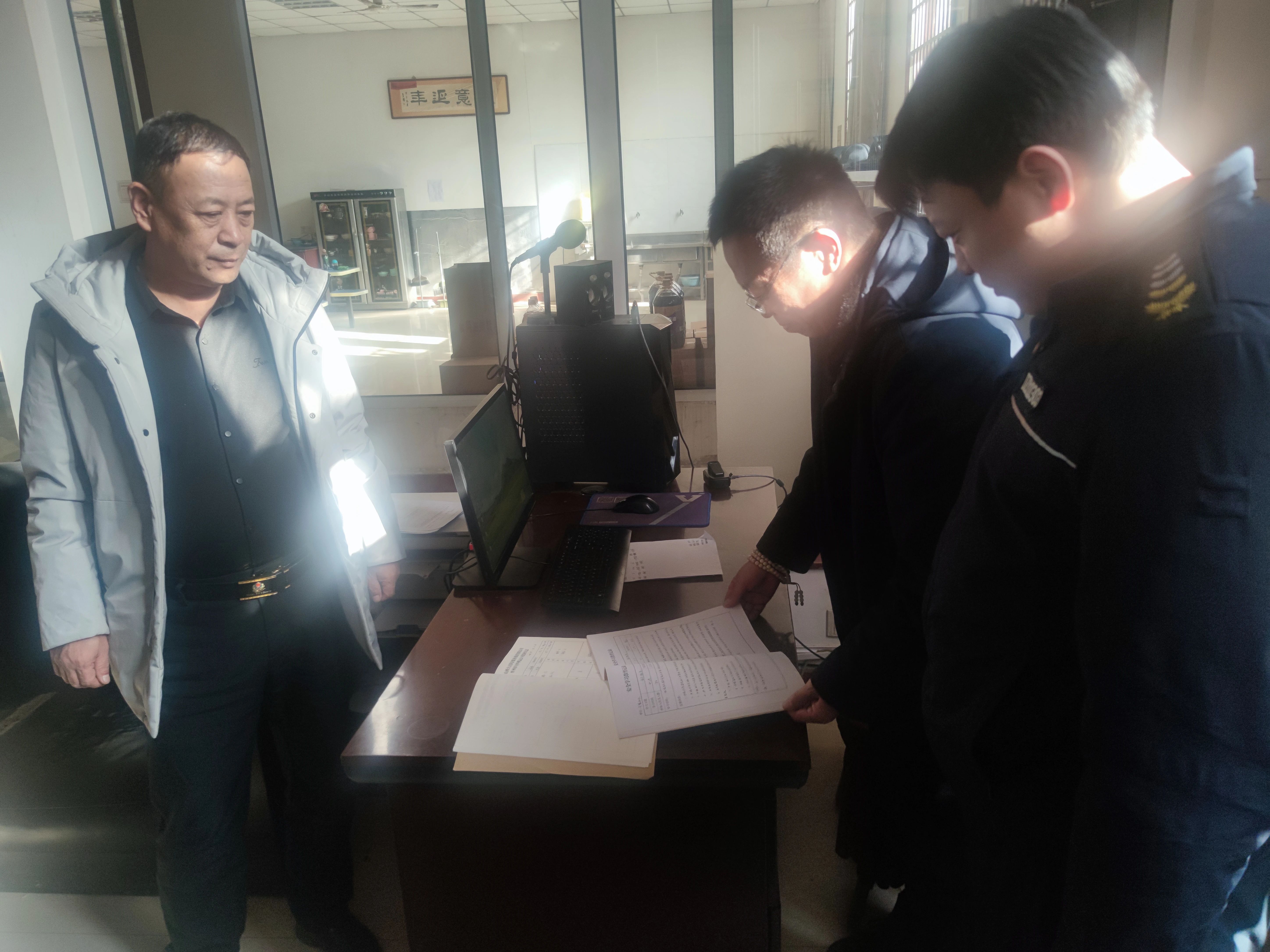 1月15日下午,集團公司安全督導(dǎo)檢查組呂雙明、盧文偉、王亮東一行深入守押公司二大隊定襄中隊開展全面安全檢查工作,中隊長喬昺耀及副中隊長梁巖、韓勇全程配合。