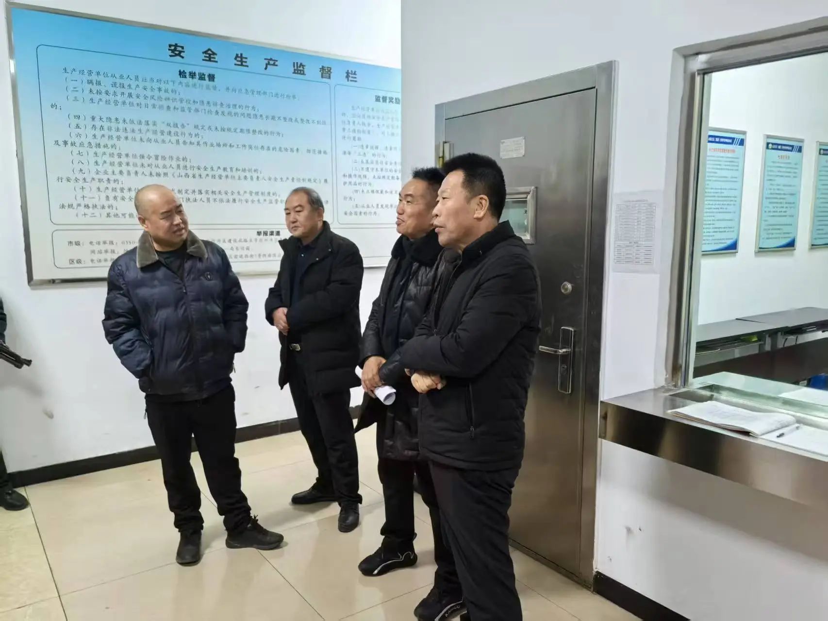 1月16日,集團公司安全督導(dǎo)檢查組張瑞東、張龍、吳杰、董淳文一行赴守押六大隊偏關(guān)中隊,開啟全面深入的安全檢查工作。守押公司六大隊隊長崔建偉 、副大隊長白云飛 、中隊長高虎生全程陪同,積極配合檢查組各項工作。