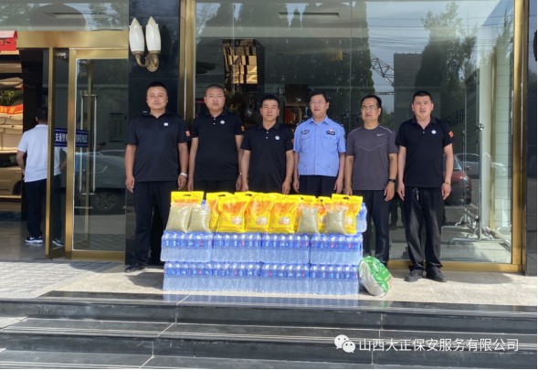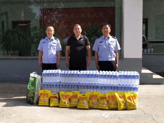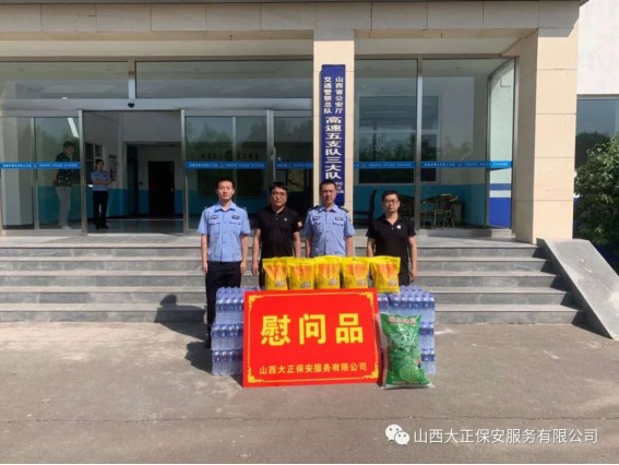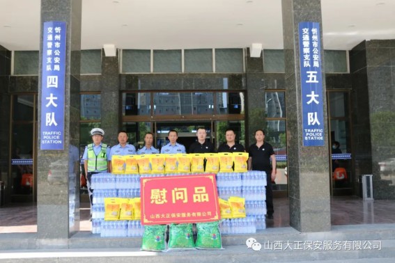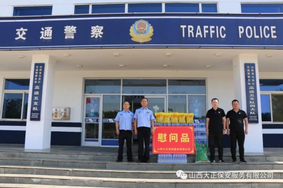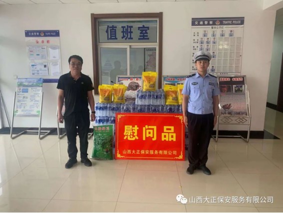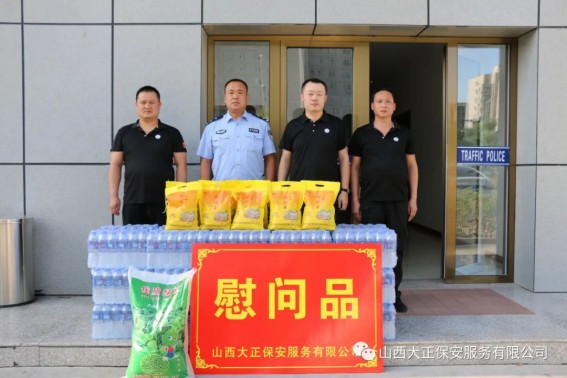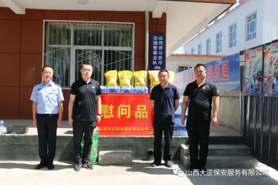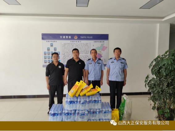 6月3日,山西大正保安服務(wù)(集團(tuán))有限公司河曲中隊(duì)代理中隊(duì)長霍健,帶領(lǐng)中隊(duì)隊(duì)員代表公司慰問了河曲縣公安局交通警察大隊(duì),為奮斗在交通指揮一線的縣交警大隊(duì)民警送去防暑降溫慰問品。將關(guān)愛送到一線,把清涼送到一線,確保一線交通干警同志們度過一個(gè)安全、衛(wèi)生、清涼的夏季。感謝一線交警不畏烈日、日夜堅(jiān)守崗位,確保了城區(qū)干道交通暢通、人民出行安全,營造了良好的道路交通環(huán)境。交警大隊(duì)副隊(duì)長李強(qiáng)接受了慰問,并表示:“有了企業(yè)的關(guān)愛及社會(huì)各界的理解和支持,讓交警感受到了無盡的清涼。全體民輔警將繼續(xù)發(fā)揚(yáng)‘能吃苦、能戰(zhàn)斗、能奉獻(xiàn)’的優(yōu)良作風(fēng),以更加飽滿的工作熱情投入工作中,以實(shí)際行動(dòng)回報(bào)社會(huì)各界的關(guān)愛。”
