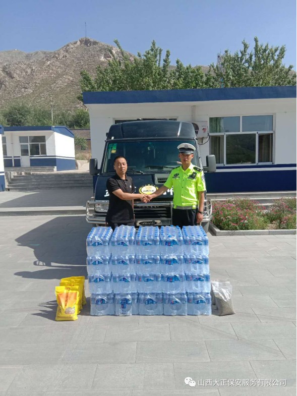 連日來的持續(xù)高溫天氣,讓許多市民對(duì)出門望而卻步。然而,在我們主要交通干道上,交警卻一直耐著高溫堅(jiān)守在自己的崗位上。近日,山西大正保安服務(wù)(集團(tuán))有限公司守押偏關(guān)中隊(duì)高虎生隊(duì)長,代表公司帶隊(duì)前往偏關(guān)縣公安局交通警察大隊(duì),為堅(jiān)守一線的交警送去防暑用品。