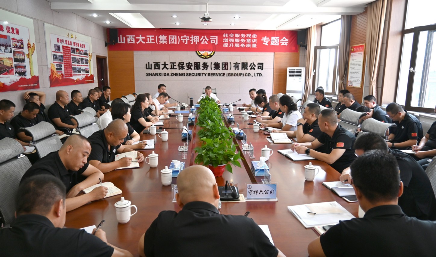 7月21日上午,山西大正(集團)守押公司召開轉(zhuǎn)變服務(wù)觀念、增強服務(wù)意識、提升服務(wù)質(zhì)量專題會議。集團公司黨委書記、董事長張躍生出席并做重要講話。黨委副書記、總經(jīng)理趙培宏主持會議。黨委委員、副總經(jīng)理王明生,總經(jīng)理助理、辦公室主任宋林兔,總經(jīng)理助理、守押公司副總經(jīng)理寇星云、守押公司其他領(lǐng)導及集團公司一室七中心負責人,基層分公司、中隊負責人四十余人參加。