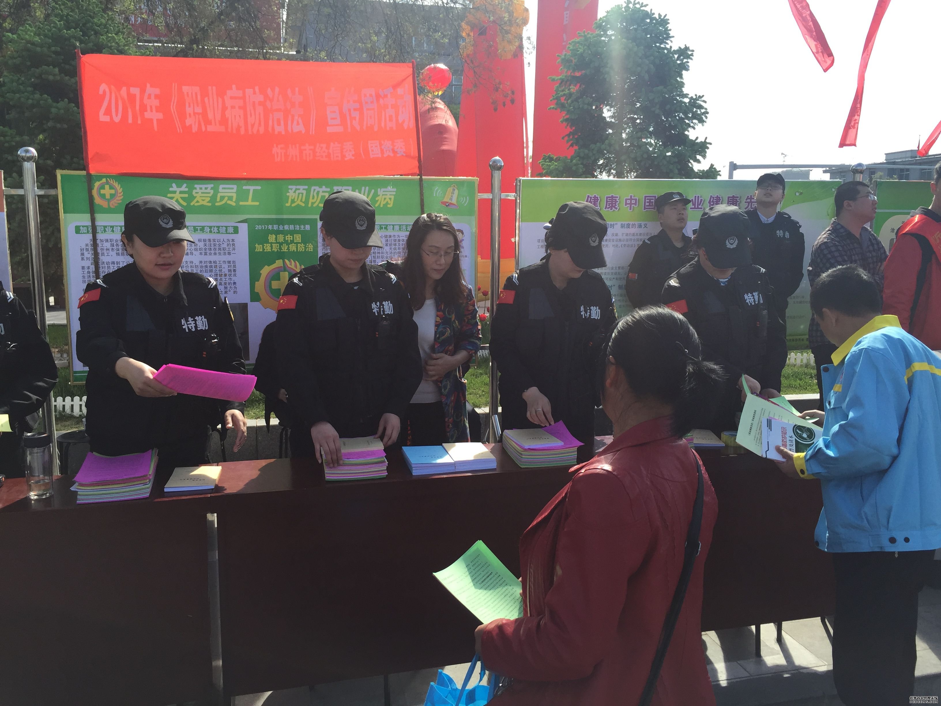 此次活動(dòng)由市安全生產(chǎn)委員會(huì)、市經(jīng)信委等六家單位主辦,副市長(zhǎng)范建民出席啟動(dòng)儀式并講話,市總工會(huì)、安監(jiān)局、發(fā)改委、衛(wèi)計(jì)委、工商局、人社局等多家單位以及企業(yè)代表參加了活動(dòng)。儀式結(jié)束后,我們?cè)谛麄鲄^(qū)向市民發(fā)放宣傳資料和宣傳書籍,并向熱心市民講解職業(yè)病的危害性以及防治的必要性。臨近夏天的天氣已然很熱,我們穿著厚重的制服站在太陽(yáng)下,汗水悄悄地順著臉頰滑下。我們的精神風(fēng)貌得到了國(guó)資委領(lǐng)導(dǎo)的肯定,良好的形象受到了市民及其他活動(dòng)單位的贊揚(yáng)。