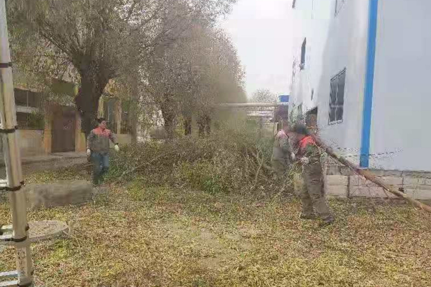 有的同志在樹上使用工具修剪樹枝,有的則在地面撿拾枝葉,還有的用掃把清掃環(huán)境衛(wèi)生,全體參與人員分工協(xié)作,經(jīng)過連續(xù)兩天的緊張工作,院內(nèi)的樹枝全部修剪完畢,辛勤的勞動換來了衛(wèi)生的整潔,保持了集團總部辦公新址院內(nèi)的環(huán)境美觀。