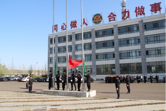 為五月高歌,為勞動者擊掌。在“五一”國際勞動節(jié)來臨的一大早,伴隨著激昂的《義勇軍進(jìn)行曲》,直屬公司榆樹坡中隊在駐地大樓前廣場隆重舉行了慶祝“五一”升國旗儀式,五星紅旗迎著朝陽冉冉升起。
