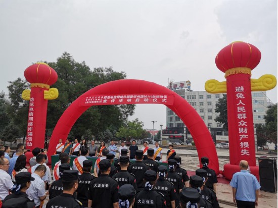 6月11日,山西大正牽手平安文化藝術(shù)公司在日月廣場參加由忻州市公安局、忻州市人民銀行和山西大正保安服務(wù)有限公司聯(lián)合組織開展的“防范電信網(wǎng)絡(luò)詐騙暨忻州撥96110防騙熱線宣傳活動啟動儀式”。