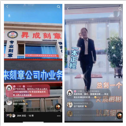 山西大正昇成刻章服務(wù)有限公司在這一背景下,結(jié)合業(yè)務(wù)運(yùn)營(yíng)實(shí)際,以拍攝公司宣傳片、制作有趣視頻、段子等多種方式,通過(guò)策劃、拍攝、錄音、剪輯、配樂(lè)、合成輸出等過(guò)程制作成片,在抖音、微信等云端平臺(tái)進(jìn)行發(fā)布,對(duì)公司進(jìn)行全方位宣傳。以期利用抖音“短”視頻平臺(tái)優(yōu)勢(shì),將信息及時(shí)適配用戶群體,發(fā)揮企業(yè)宣傳“長(zhǎng)”效應(yīng)。